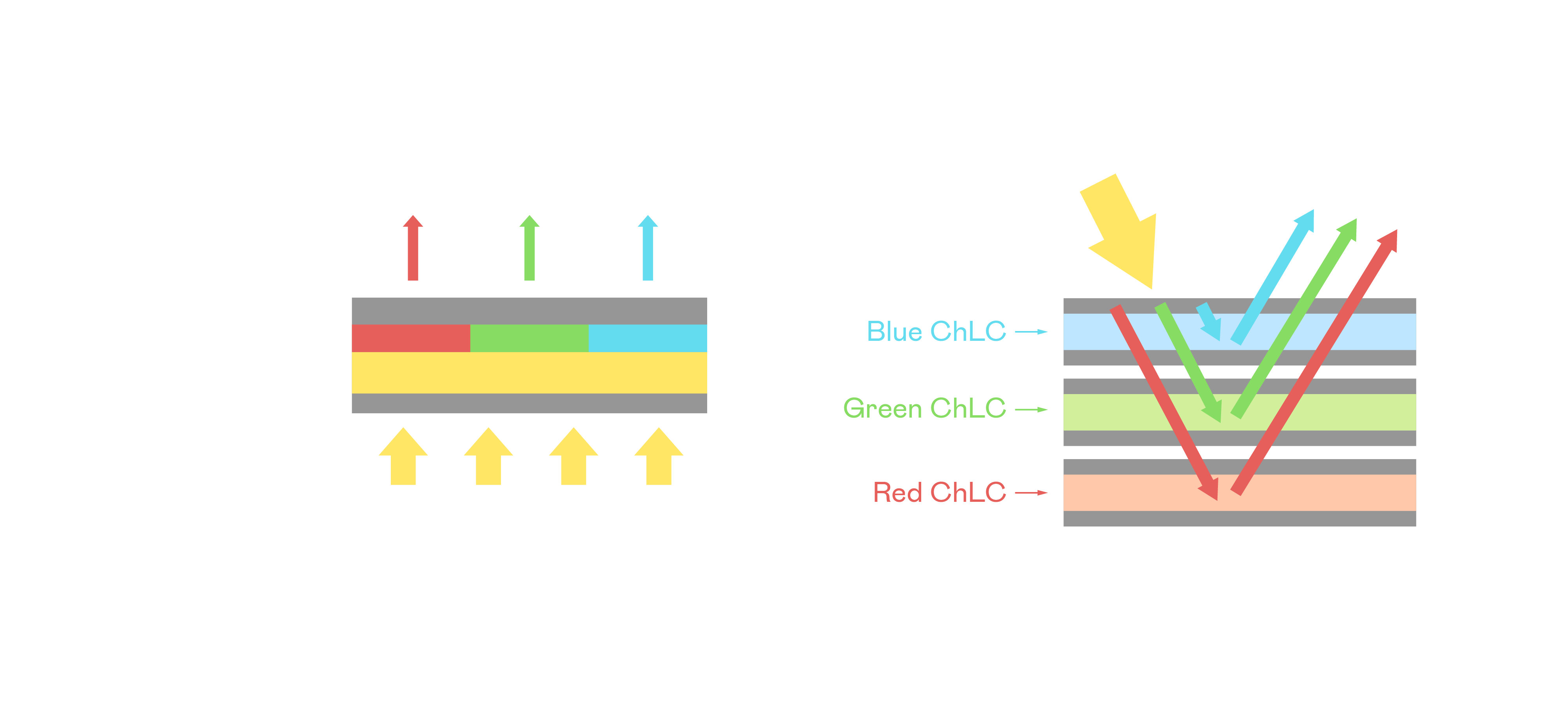 51cg.fun胆固醇液晶显示器是由红、绿、蓝三层胆固醇液晶面板堆叠而成,并采用无彩色滤光片设计,减少环境光在反射过程中的损耗。